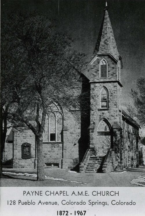 When Colorado was still a territory, the very first established Christian Community for persons of color in Colorado Springs was Payne Chapel African Methodist Episcopal Church. In 1872, four Carter brothers and their families moved to Colorado Springs from Pennsylvania. This family group formed the nucleus from which sprung Payne Chapel, named for Bishop Daniel A. Payne. The first services were held in the home of Mr. & Mrs. I. S. Carter. Through the efforts of J. S. Carter, the land at 128 Pueblo Avenue was donated by General William J. Palmer, President of the Colorado Springs Company and Founder of Colorado Springs. The frame structure was built on this site.